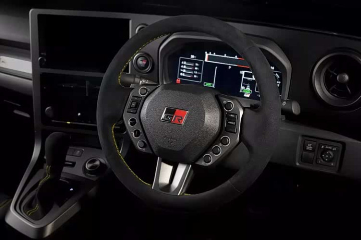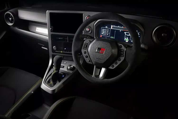 内饰延续“功能优先,质感加分”的赛道化风格。重新设计的专属方向盘采用Alcantara材质包覆,黄色缝线与Morizo专属标识相得益彰,集成的定制化按键让音频、定速巡航等功能可盲操,适配激烈驾驶时的操作需求。