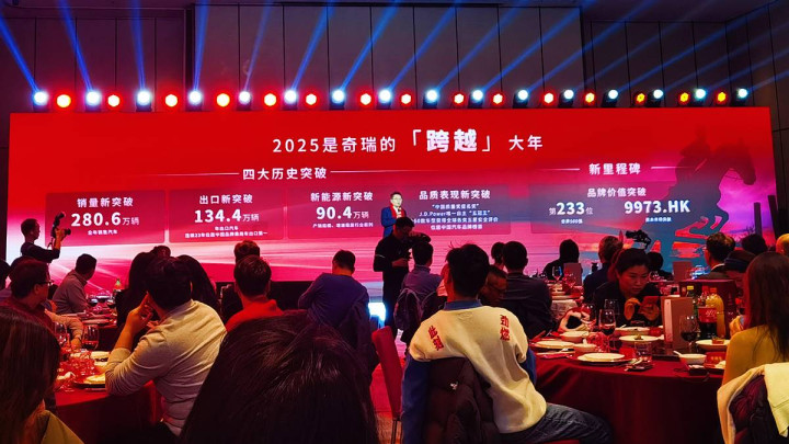 2025的奇家宴,不谈空话,只亮实绩。现场,奇瑞集团不仅端出了2025年销量突破280万辆、出口134万辆、新能源增长54.9%的硬核成绩单,更直接锚定了2026年集团销量320万辆的新目标,而贯穿始终、反复强调的关键词只有两个字:“兑现”。